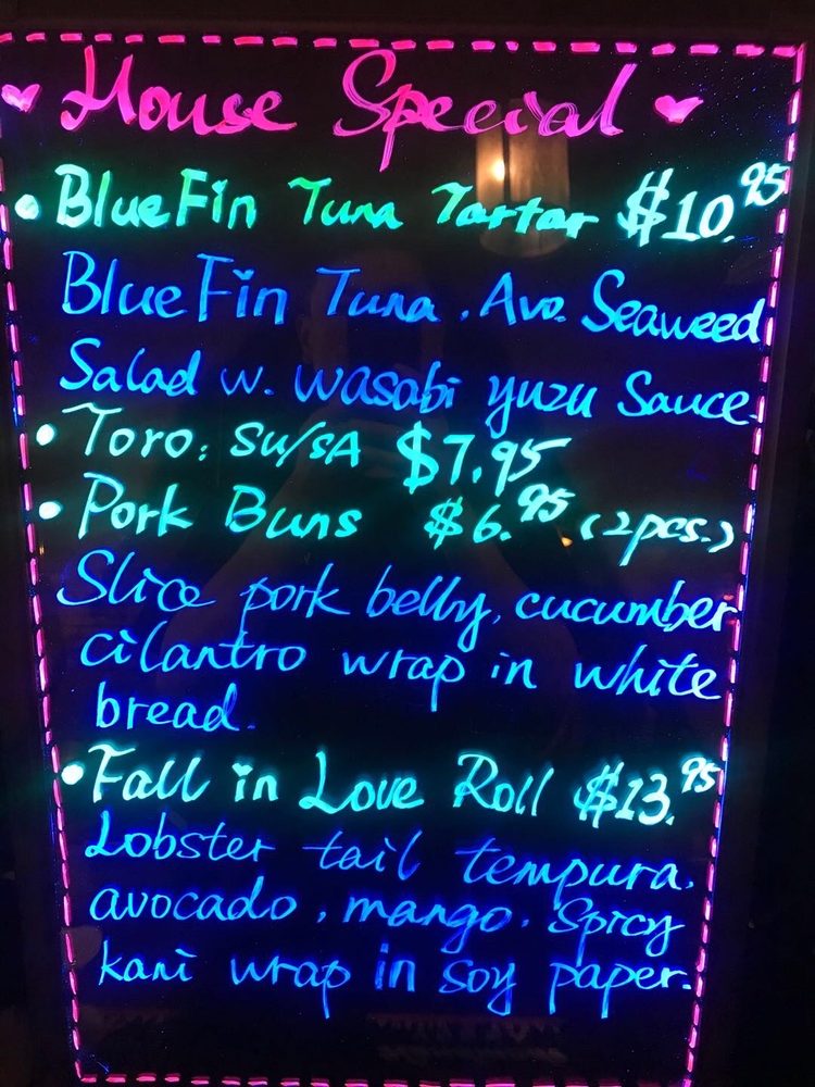 Spicy tuna, or salmon, served with avocado, crunch, eel sauce, spicy sauce and tobiko.